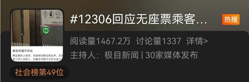 万隆优配 无座票乘客被劝离静音车厢?12306最新回应;相关话题持续上热搜,